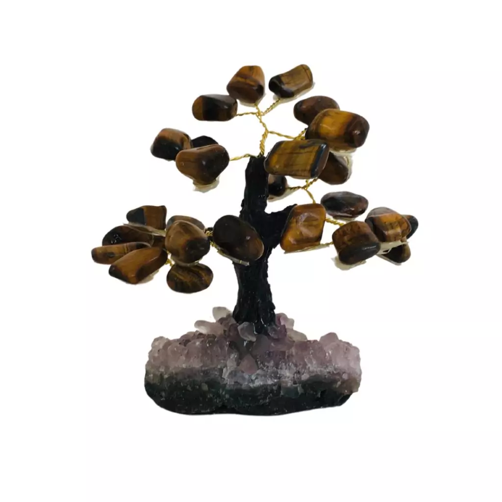 Árvore da Vida Pedra Olho de Tigre e Base Drusa Ametista