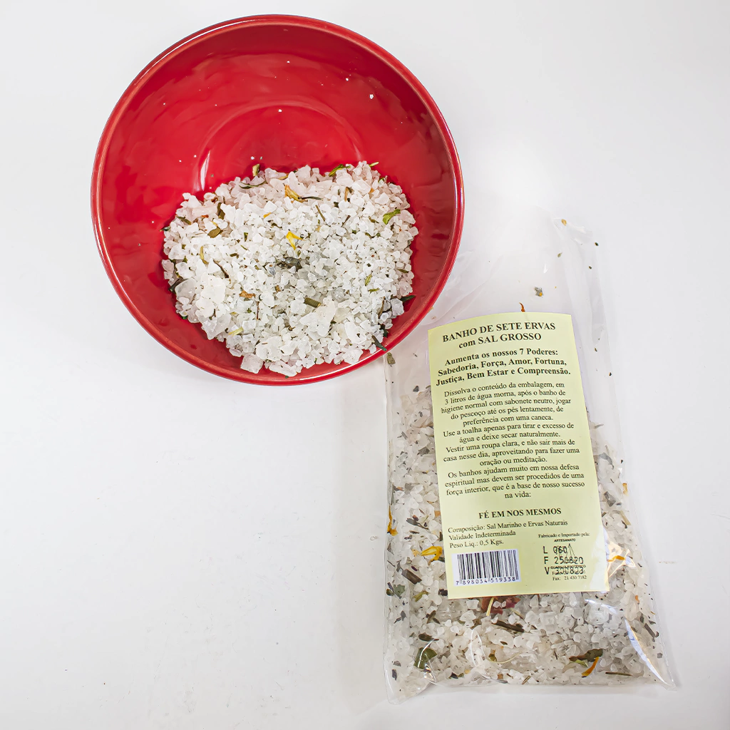 Transforme sua energia com o poderoso Banho de 7 Ervas com Sal Grosso, uma mistura excepcional que promove limpeza espiritual e atrai boas vibrações. Ideal para quem busca um banho de descarrego, anti-estresse e um toque afrodisíaco.