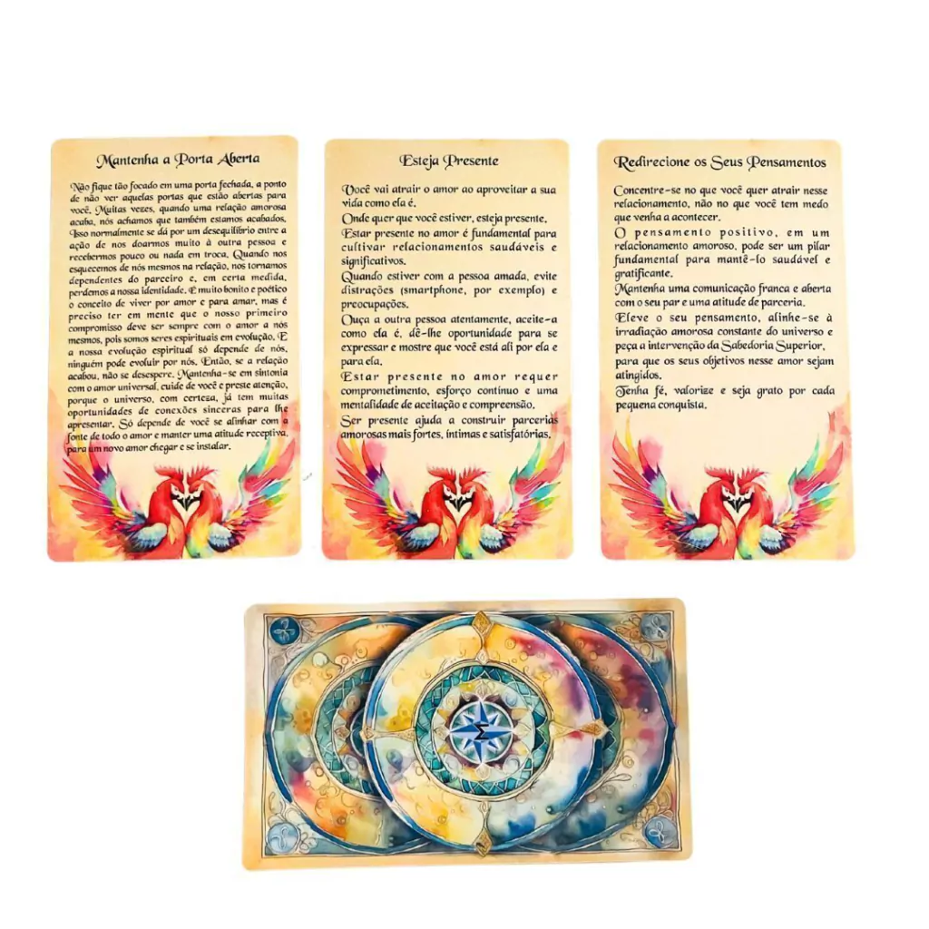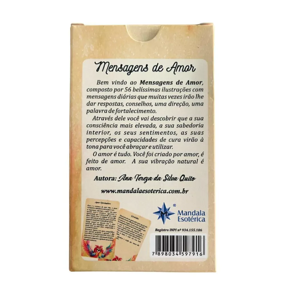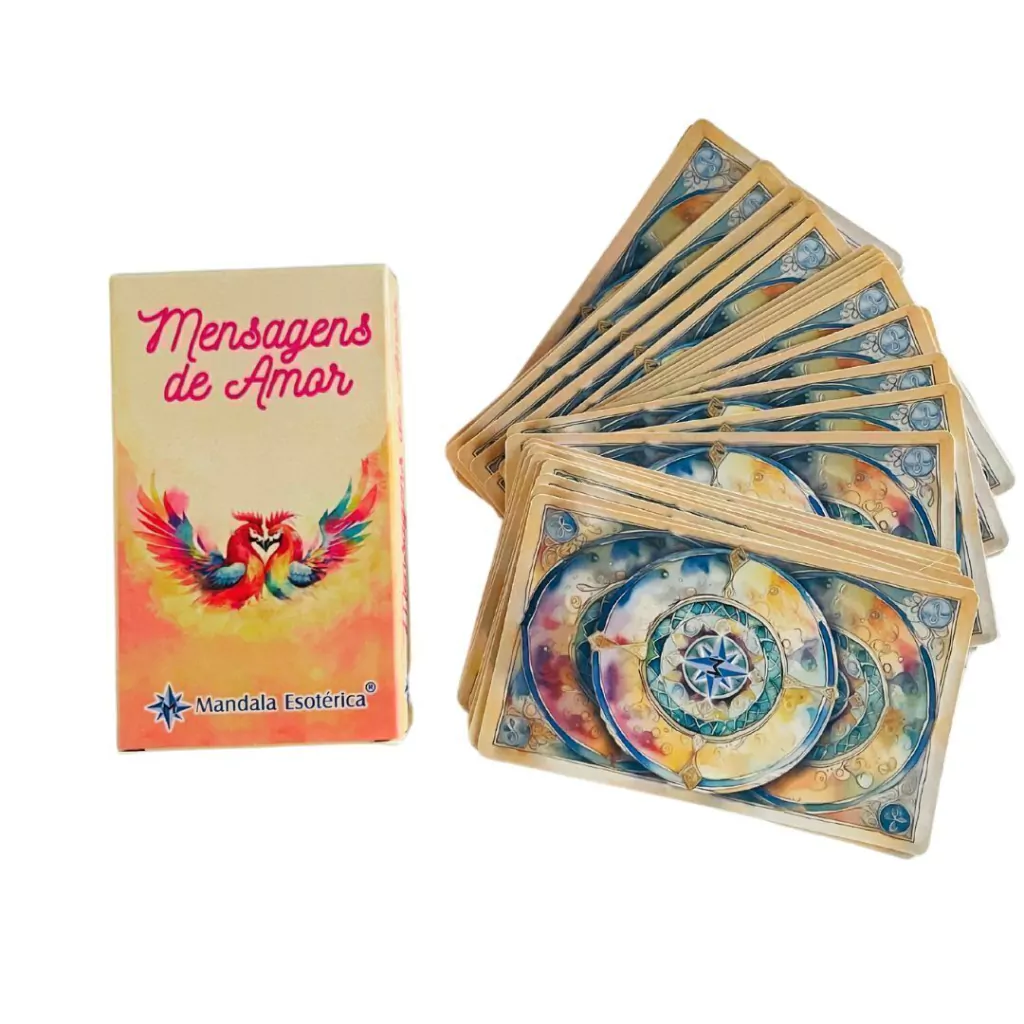 Baralho com 56 cartas e mensagens diárias com aconselhamentos e palavras de fortalecimento sobre o amor.