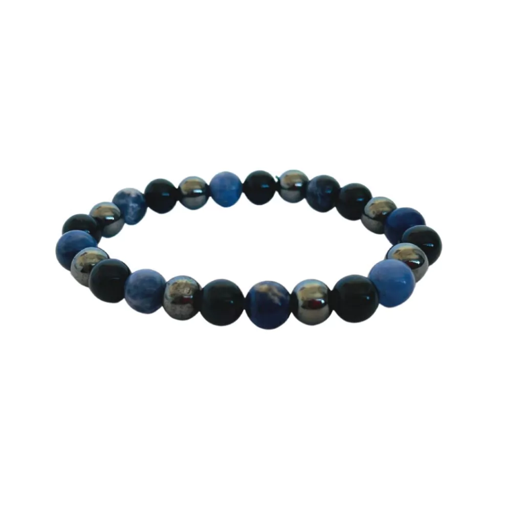 Pulseira ajustável com contas de pedra sodalita, hematita e ônix é ideal para o pulso de qualquer homem moderno e conectado com as energias, essa pulseira ajuda a ativar as energias dessas poderosas pedras de proteção.