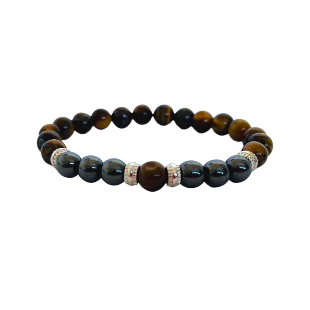 Pulseira Masculina de Pedras Naturais Olho de Tigre e Hematita