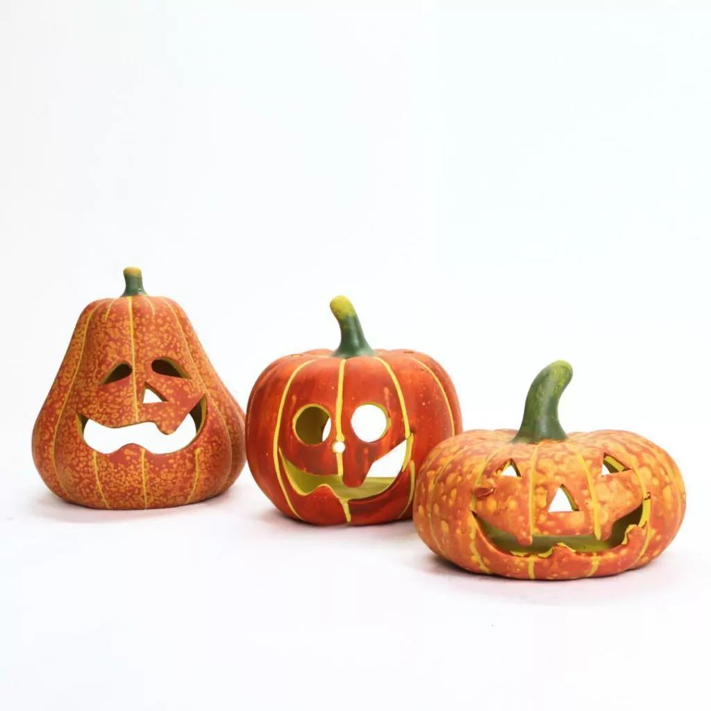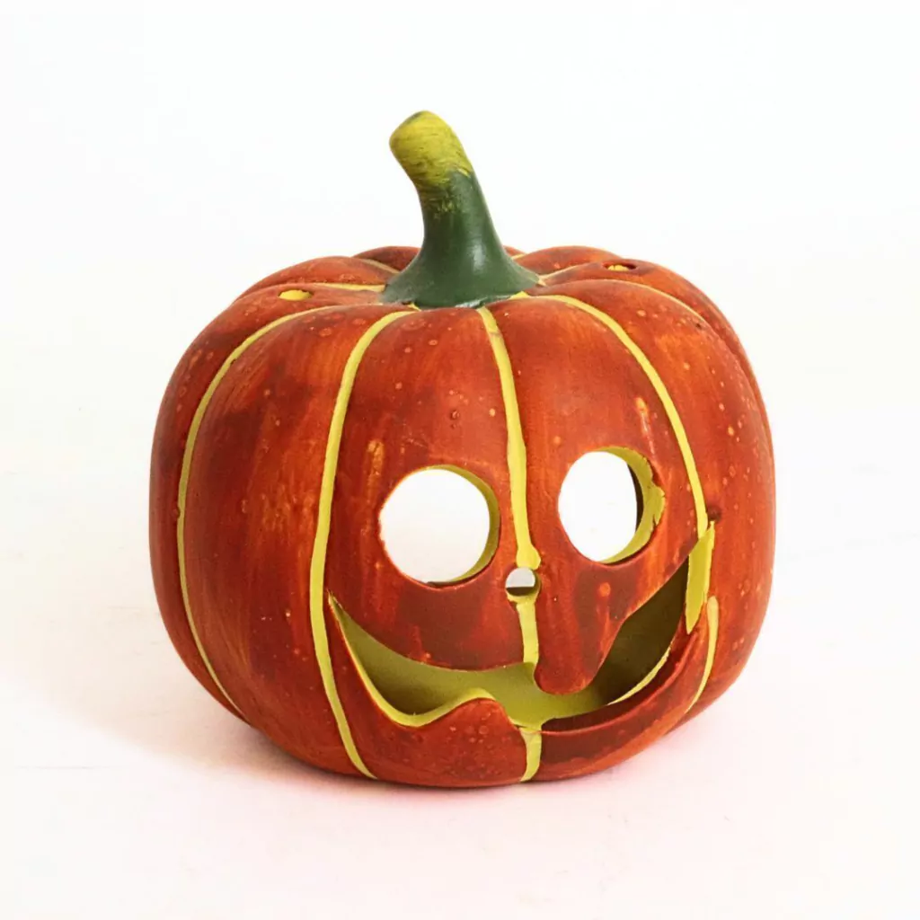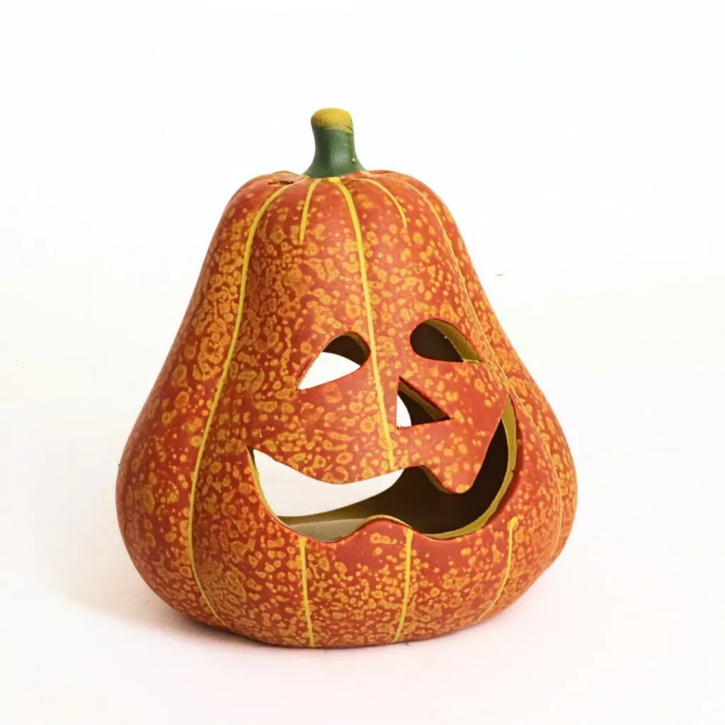 A Luminária de Abóbora foi feita em cerâmica de alta qualidade e durável, resistente ao calor e fácil de limpar. Peça ideal para decorar de forma divertida e atraente, possui um design que imita uma abóbora, com detalhes como textura de casca, sulcos e talos realistas. Você vai arrasar na festas de Halloween!